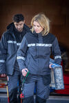 Padded functional jacket in wind- and waterproof material, taped seams. Zipper at front covered with flap to prevent wind draft as well as water leakage, press-stud closure. Removable hood, adjustable in two ways with drawstring at front and with vire system at the back. Side pockets on both sides, generous breast pocket on the right side and one inner pocket on the left side, all pockets with zip closure. Adjustable sleeve ends with Velcro, adjustable hem with drawstring. Laundry chip pocket in the inner left side seam. Increased visibility EN 17353 Supplied in a bio-based, compostable bag.