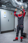 Workpant with open side pockets and back pockets with extra widht, left side with flap and magnetic closure. Holster pockets on both sides for tools, pens etc. Leg pockets, on left side pocket with flap and magnet closure, internal phone pocket and bracket for ID-card. On the right side pocket for folding rule and pocket for tools with knife button. Knee protection pockets, opening from the outside with zipper. Wider belt loop at the back to prevent pressure from belt. Hidden button at front. Pre-bent knees, stretch fabric in croatch and sewn-in stretch band in the waist for increased comfort. Reinforcement in the folding rule pocket, back pockets and over knees for increased durability. Tested for industrial washing according to ISO 15797 Increased visibility EN 17353 Supplied in a bio-based, compostable bag